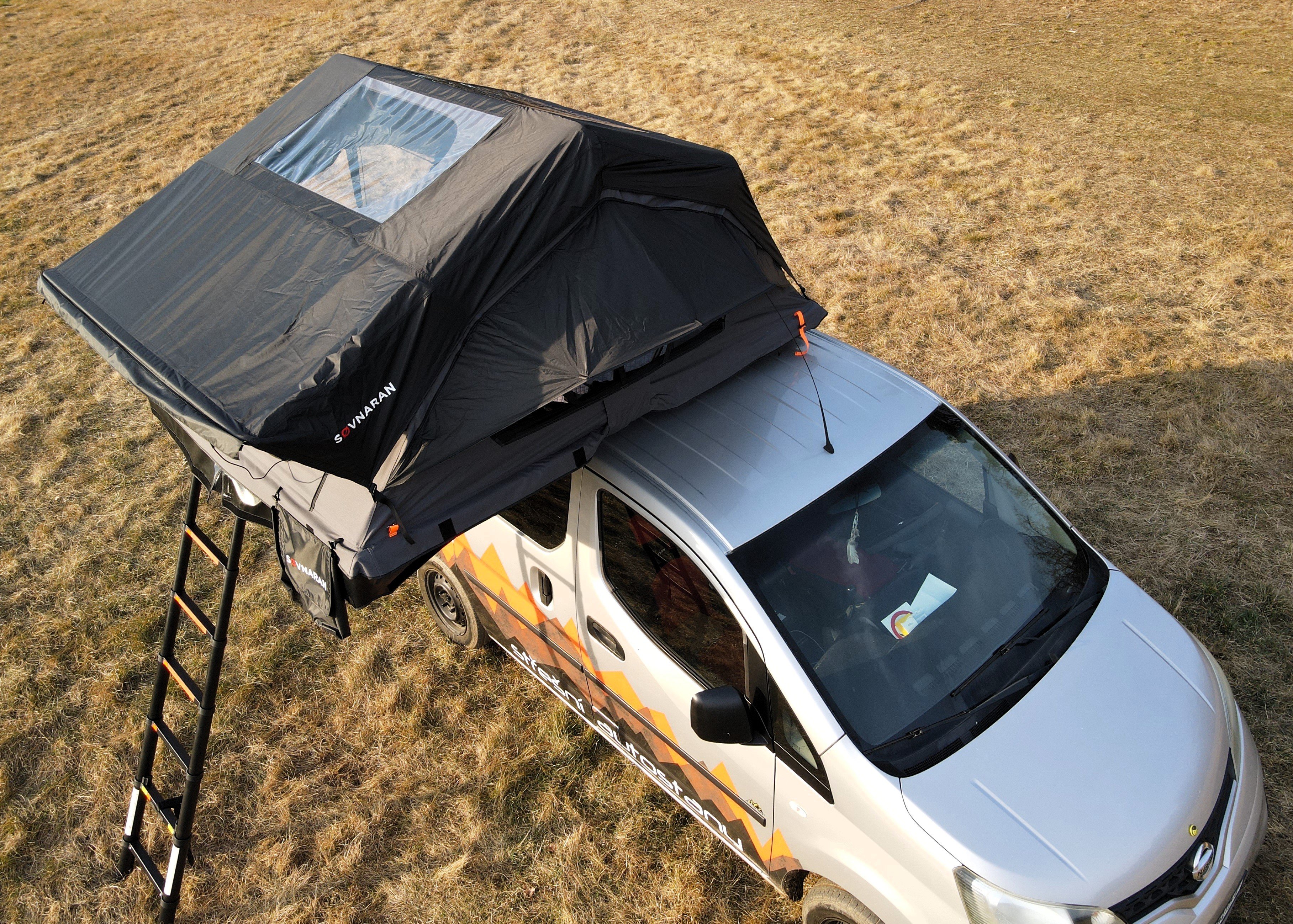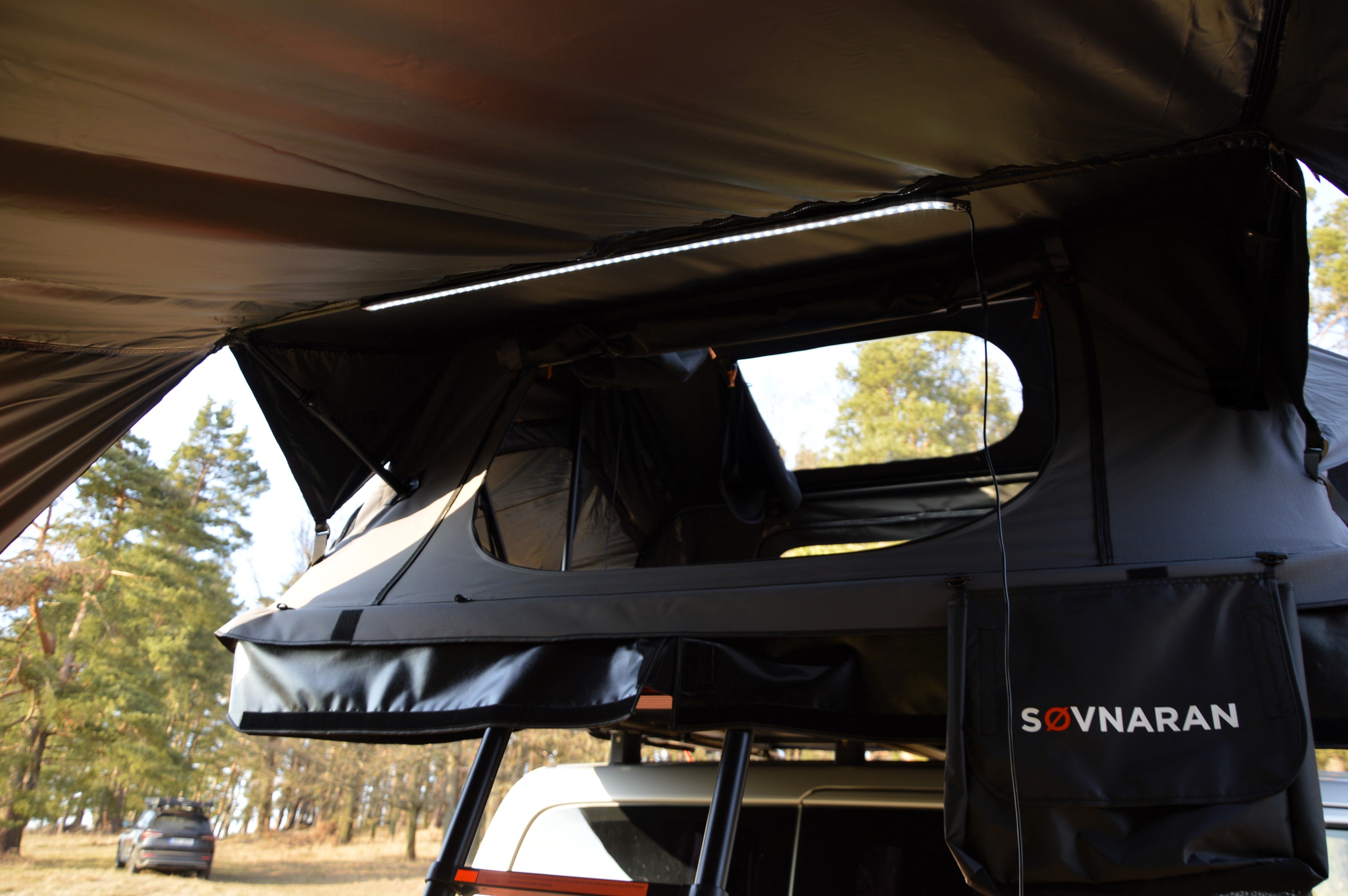 V balení najdete systém ke snadnému uchycení stanu na střechu auta, systém pro uchycení drobností a teleskopický žebřík. Dále Vás už moc příslušenství nečeká. Lampičky jsme zrušili, máte hned 2 LED pásky, tyčky na okna na ty můžete také zapomenout, přístřešky se vám otevřou samy, takže zbyl už jen skladovací obal na autostan (když nebudete mít stan zrovna na autě).