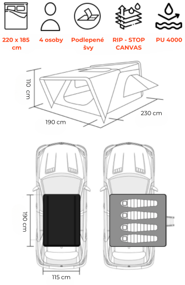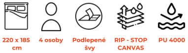 Podlaha a tělo stanu vyrobené z odolné slitiny hliníku, stěny z materiálu RIPSTOP Canvas stejně jako velmi odolné a nepromokavé tropico. Připraveno pro dobrodružství.
